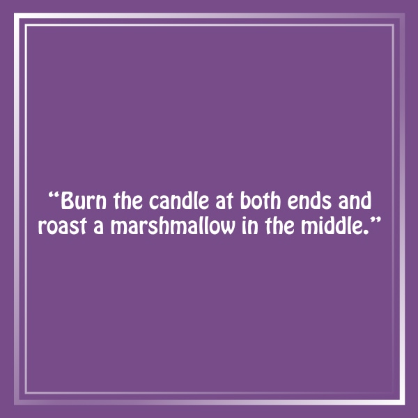 “Burn the candle at both ends and roast a marshmallow in the middle.”