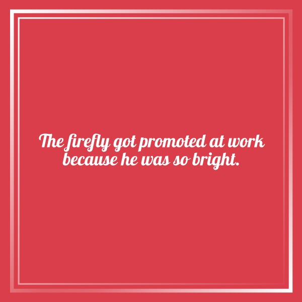 Q: What’s a firefly’s favorite game? A: Hide and glow seek.