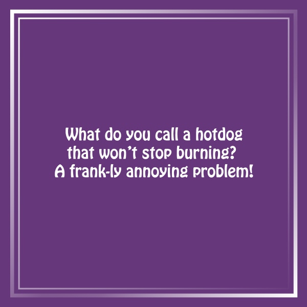 What do you call a hotdog that won’t stop burning? A frank-ly annoying problem!