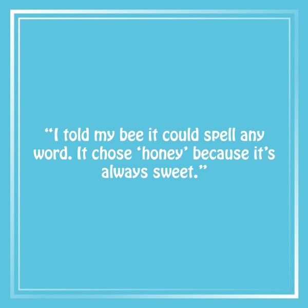 “If bees ran spelling bees, the only prize would be a lifetime supply of honey and a bee-tiful trophy.”