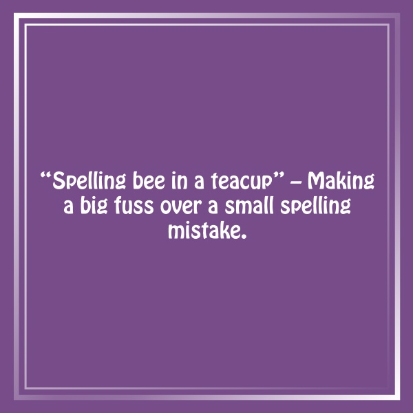 “Spelling bee in a teacup” – Making a big fuss over a small spelling mistake.