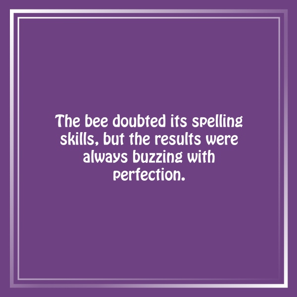 “I’m bad at spelling,” said the bee, but it always got straight A’s in spelling.