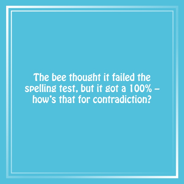 Q: What did the bee say about its spelling test? A: “I’m always buzzing with words!”