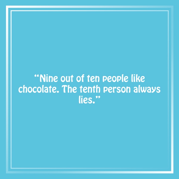 “Nine out of ten people like chocolate. The tenth person always lies.”