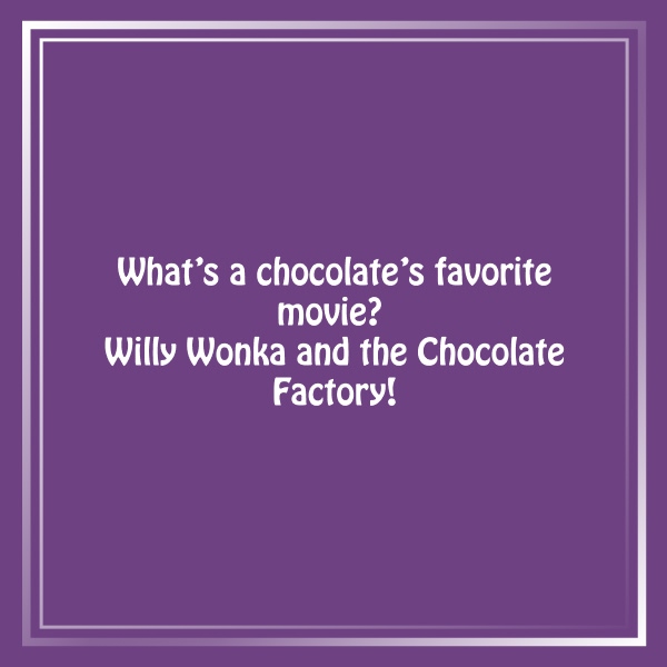 What’s a chocolate’s favorite movie? Willy Wonka and the Chocolate Factory!