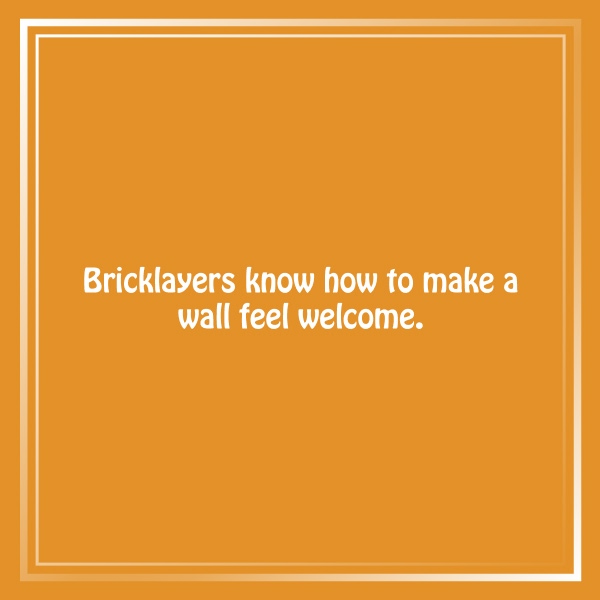 - Bricklayers know how to make a wall feel welcome.