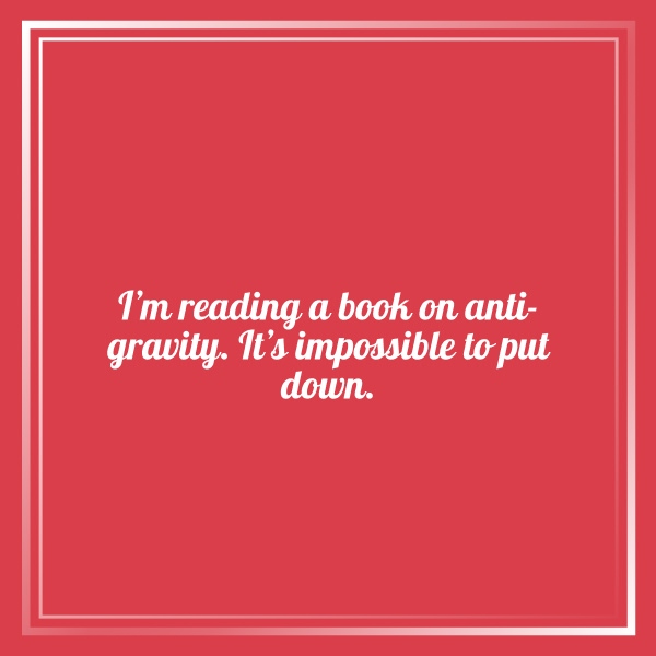 - I’m reading a book on anti-gravity. It’s impossible to put down.