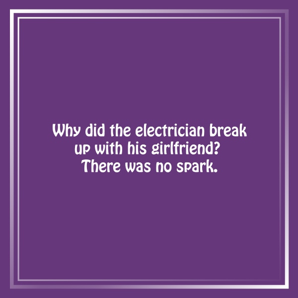 Why did the electrician break up with his girlfriend? There was no spark.