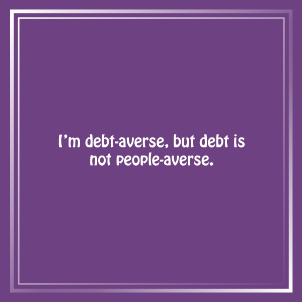 I’m debt-averse, but debt is not people-averse.