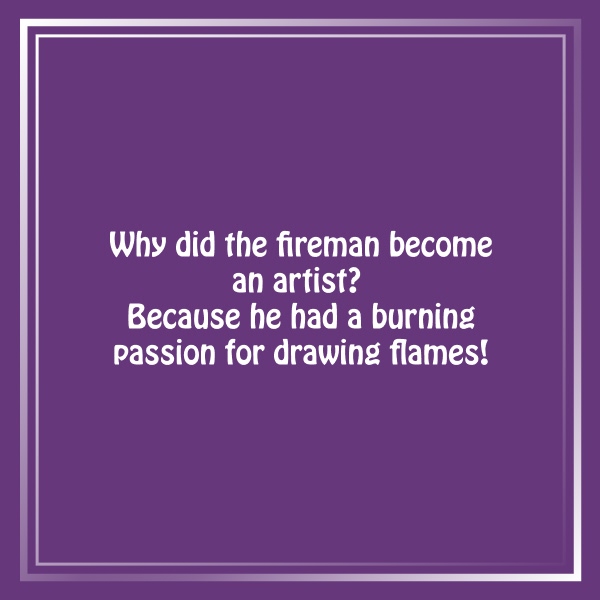 Why did the fireman become an artist? Because he had a burning passion for drawing flames!