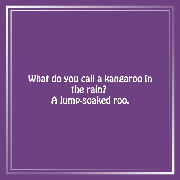 What do you call a kangaroo in the rain? A jump-soaked roo.