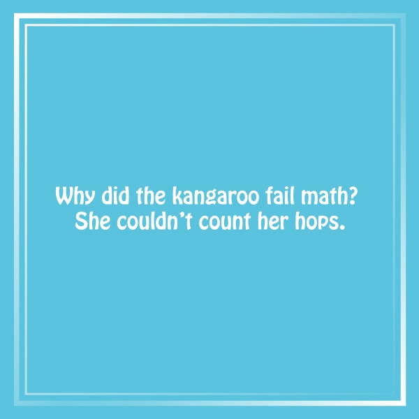 Why did the kangaroo fail math? She couldn’t count her hops.