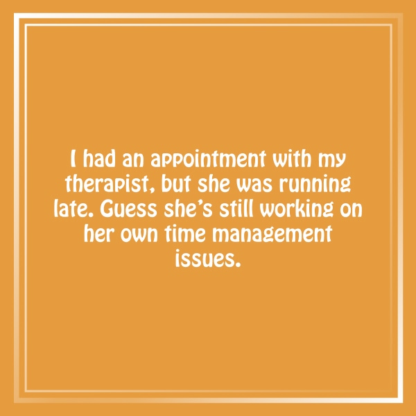 I had an appointment with my therapist, but she was running late. Guess she’s still working on her own time management issues.